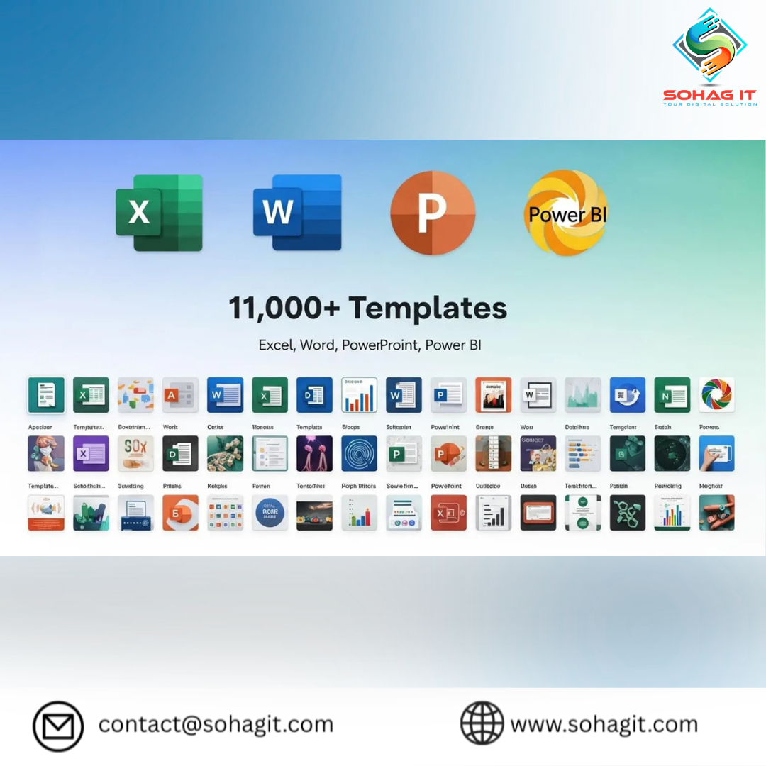 একসাথে পাচ্ছেন ১১,০০০+ Excel, Word, PowerPoint, Power BI এবং Spreadsheet টেমপ্লেট, যা আপনার কাজকে আরও সহজ, দ্রুত ও প্রফেশনাল করে তুলবে।