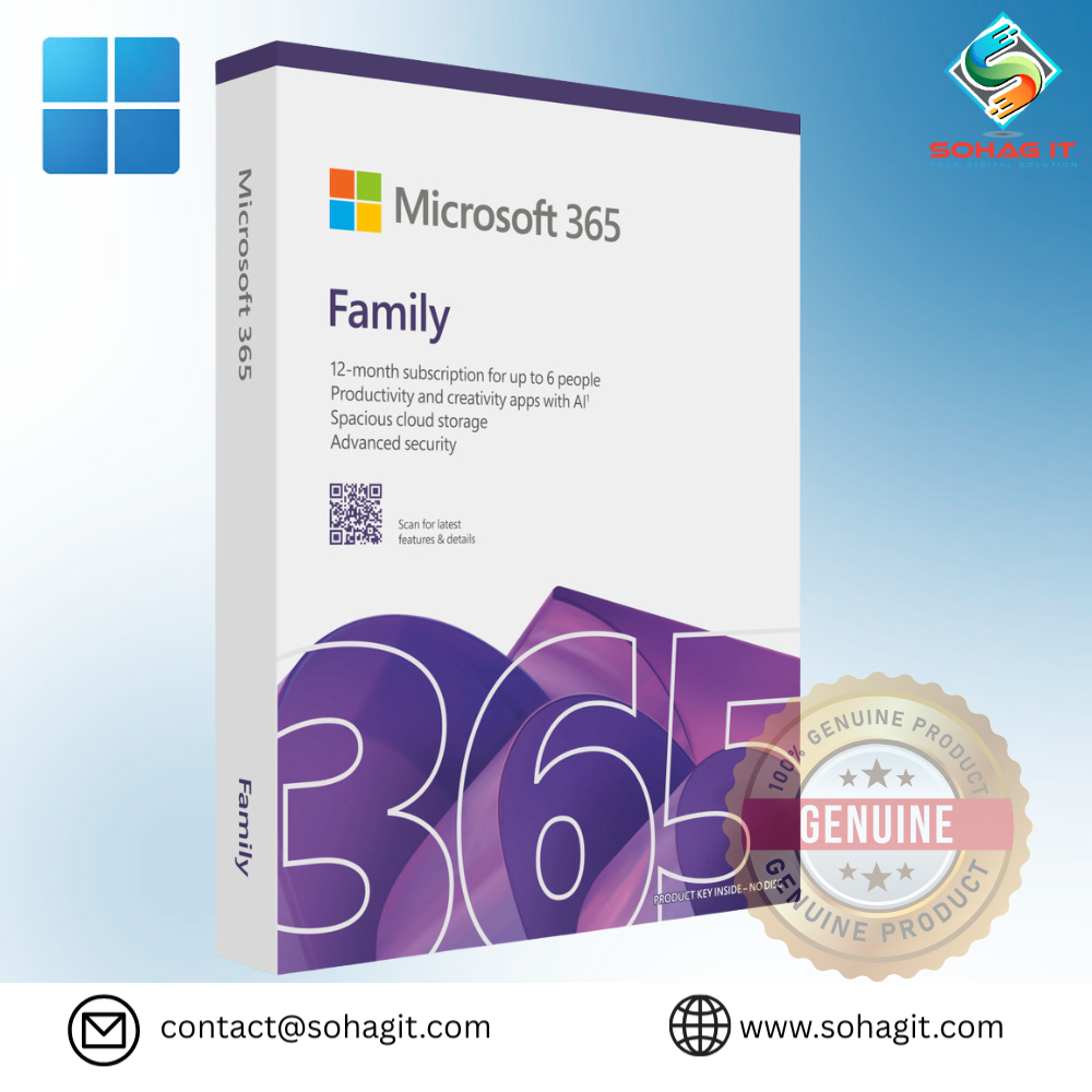 একটি সাবস্ক্রিপশন দিয়ে আপনি ৬ জন পর্যন্ত ব্যবহারকারী যুক্ত করতে পারবেন—প্রতিজন নিজের আলাদা Microsoft অ্যাকাউন্টে নিরাপদভাবে ব্যবহার করতে পারবে। এতে রয়েছে উন্নত সিকিউরিটি, Microsoft Defender, র্যানসমওয়্যার প্রোটেকশন এবং সব ডিভাইসে ব্যবহারযোগ্য অ্যাপস (Windows, Mac, Android, iOS)।